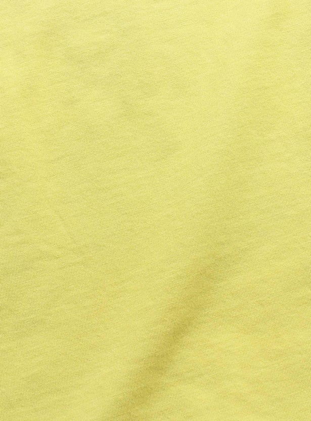 A perfect addition to your summer collection is this T-shirt highlighted with graphic print. It features a round neck and short sleeves. Team it with a pair of shorts and lace-up shoes.
