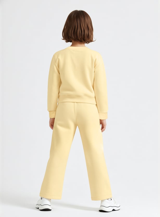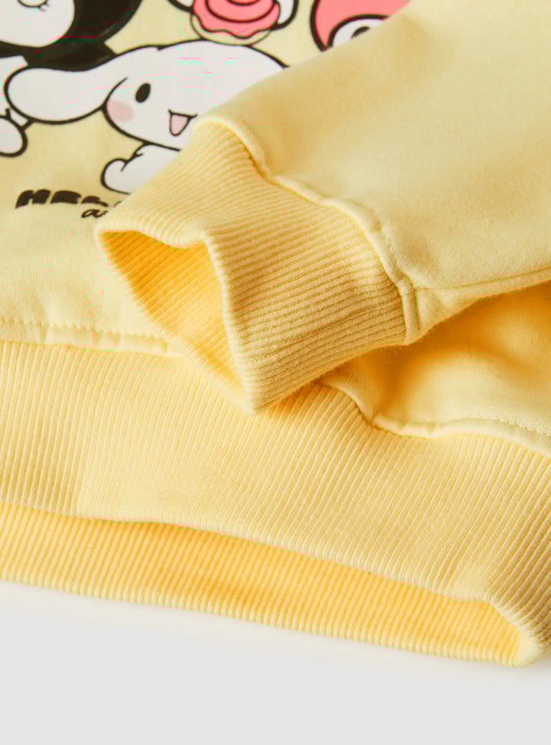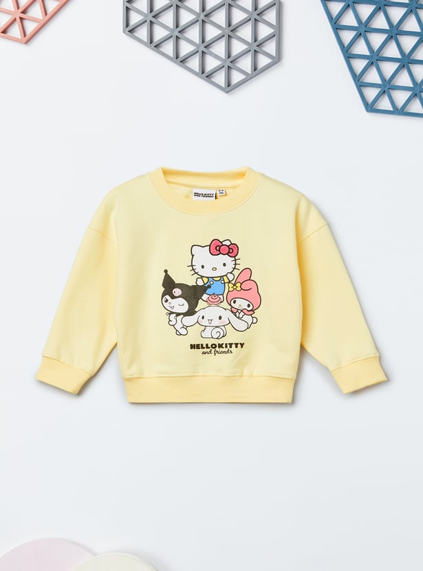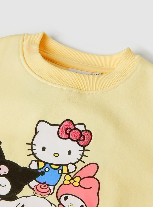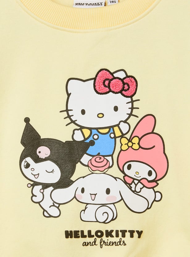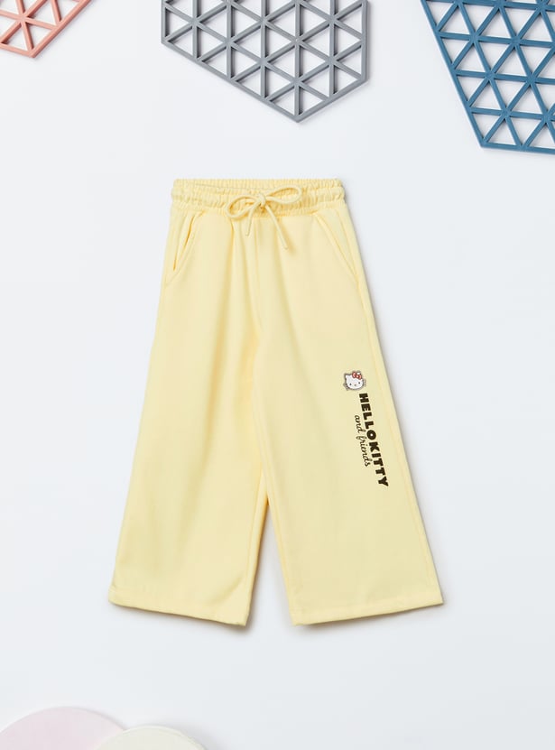 Add a playful charm to your wardrobe with this Hello Kitty trousers set. The t-shirt comes with a classic round neck and full sleeves, paired with matching trousers featuring a drawstring closure for a snug and comfortable fit.