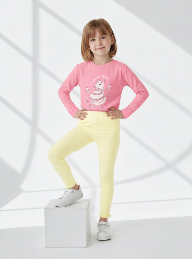 These knit leggings feature a soft, elasticated mid-rise waist for a snug and flexible fit. Perfect for everyday wear with a pop of personality.