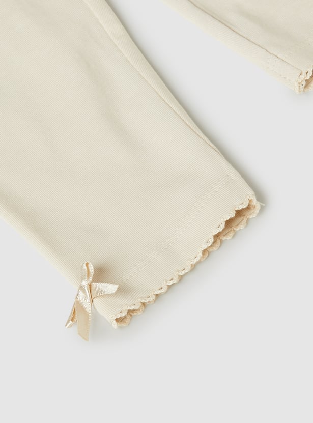 These knit leggings feature an elasticated waist for a snug fit and a cute bow detail at the hem. Soft and stretchy, they're perfect for all-day play and comfort.