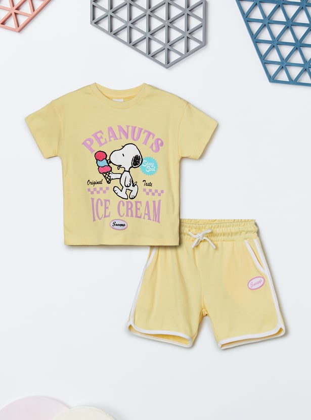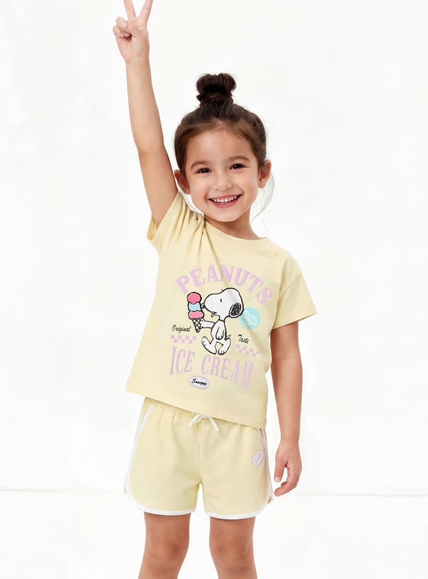 Girls Peanuts Printed Shorts Set