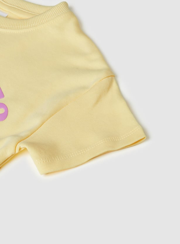 Playful and comfy, this Peanuts shorts set includes a crew neck T-shirt with half sleeves and a fun shag pattern, paired with shorts featuring a drawstring closure and practical pockets. The set blends character-inspired charm with everyday comfort, making it perfect for casual wear.