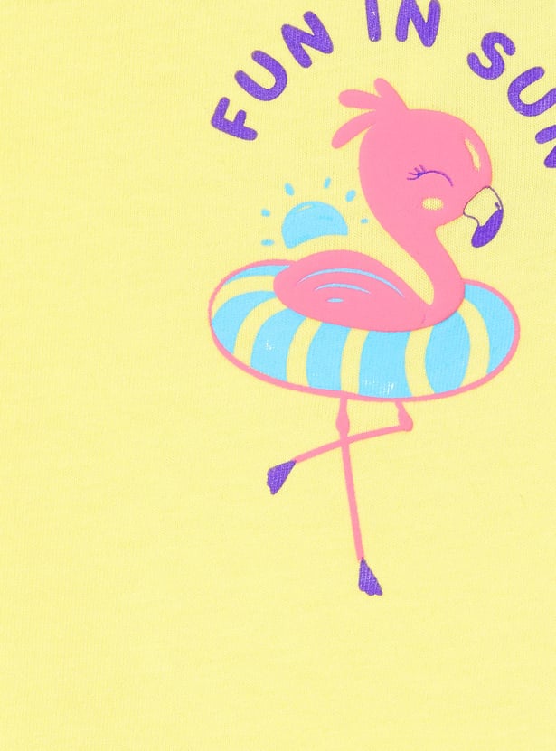 Get your little one vacation-ready with this comfortable and stylish placement print T-shirt featuring short sleeves and a round neck.