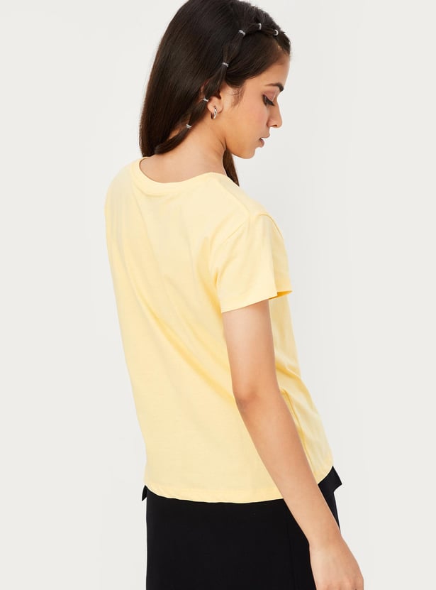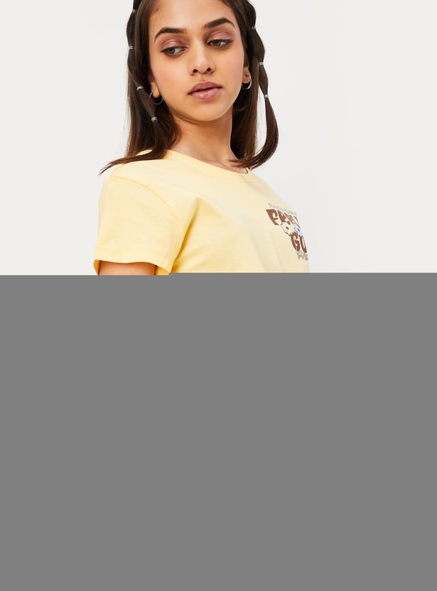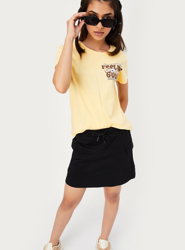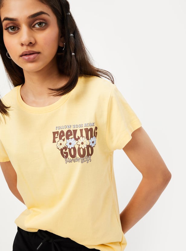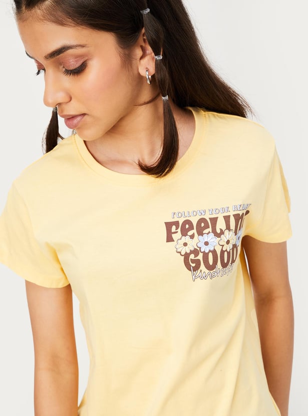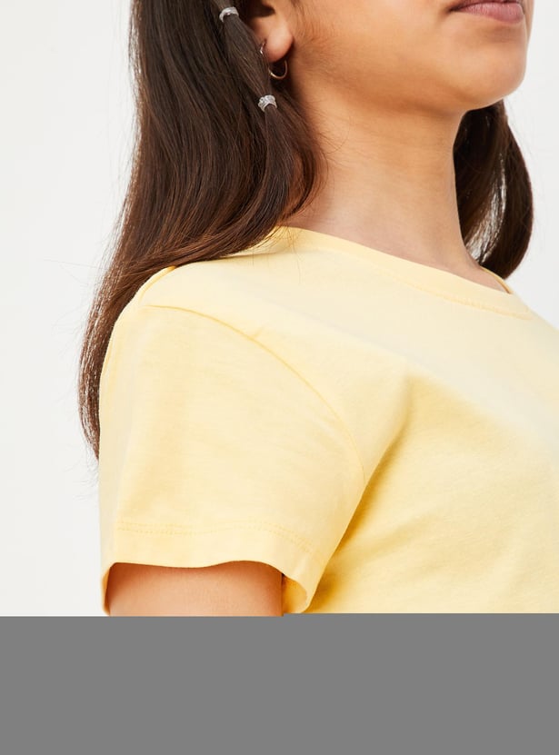 Get your little one vacation-ready with this comfortable and stylish placement print T-shirt featuring short sleeves and a round neck.