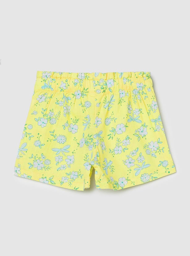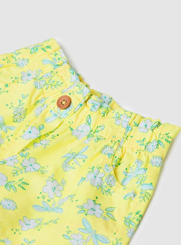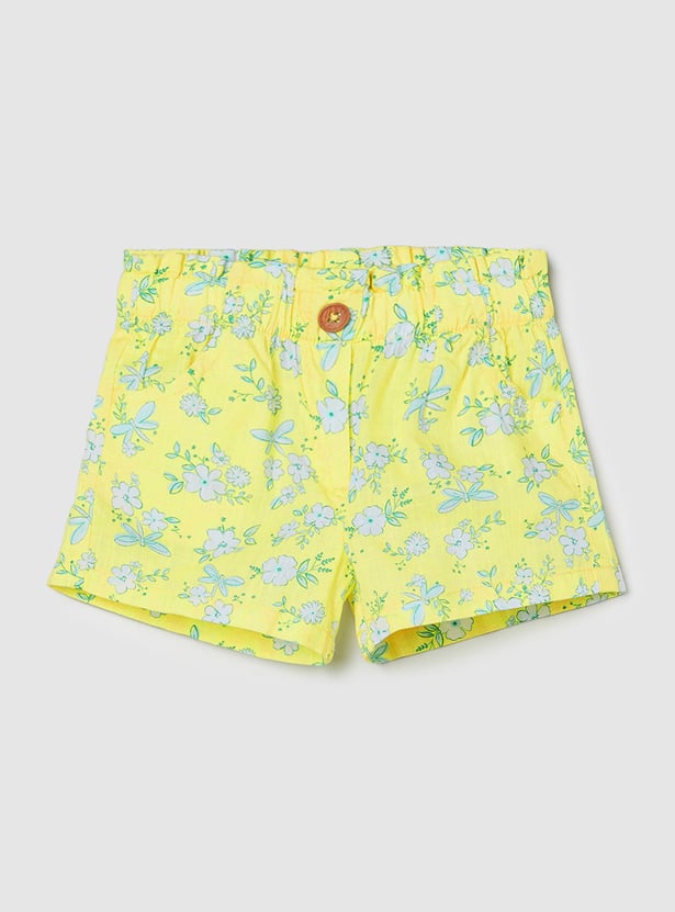 Watch your little girl chase rainbows and giggles with these casual shorts featuring a printed surface with an elasticated waistband with button closure and pockets for tiny treasures introducing a glimmer of joy to their outfits
