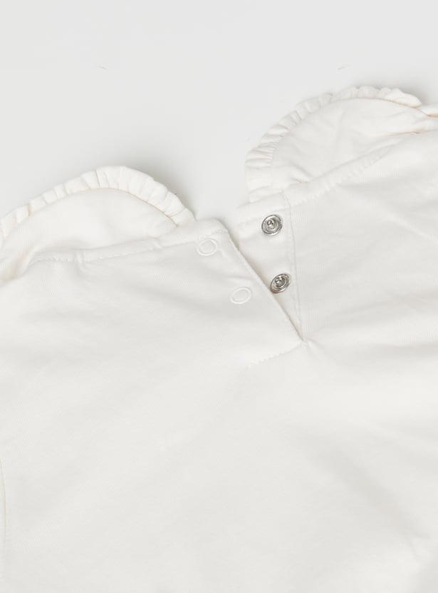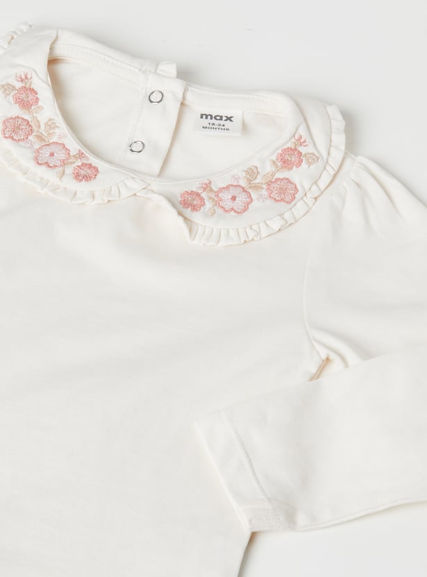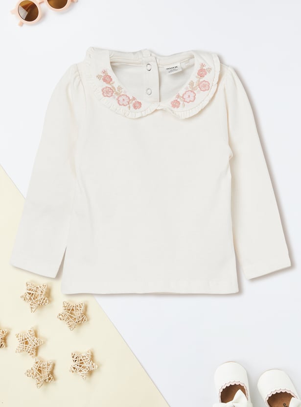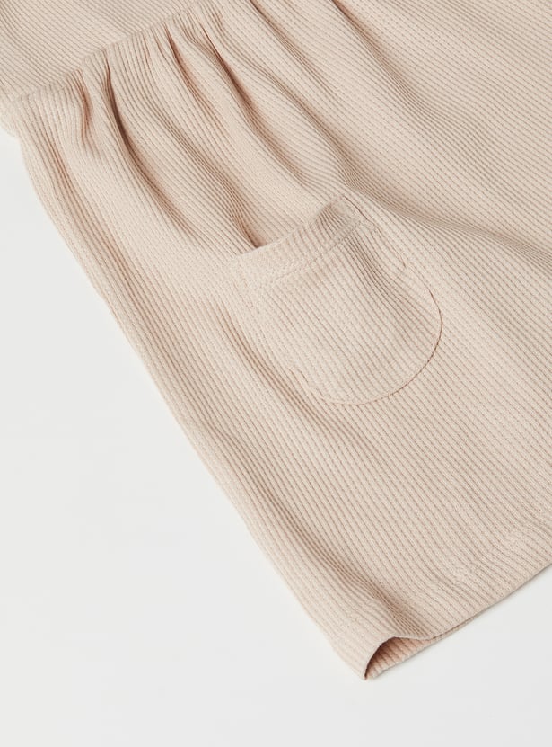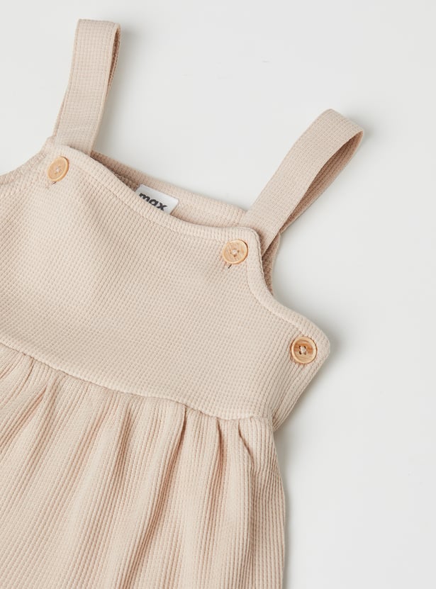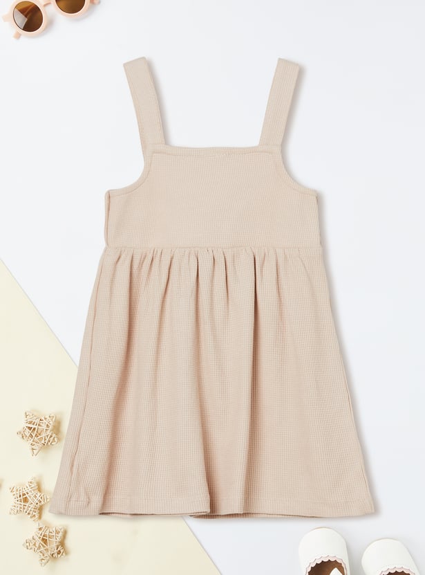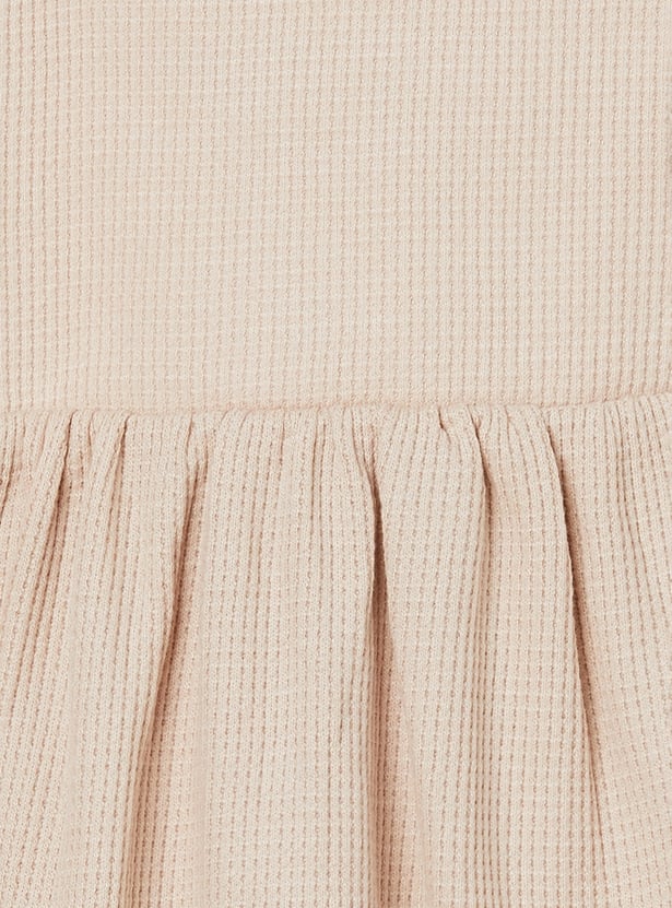Charming and stylish, this textured pinafore dress features a square neck and sleeveless design, perfectly paired with a soft top. The top adds a sweet touch with its Peter Pan collar and full sleeves.