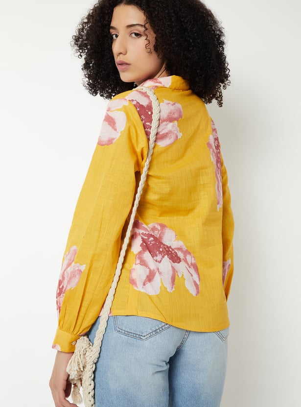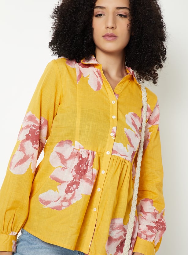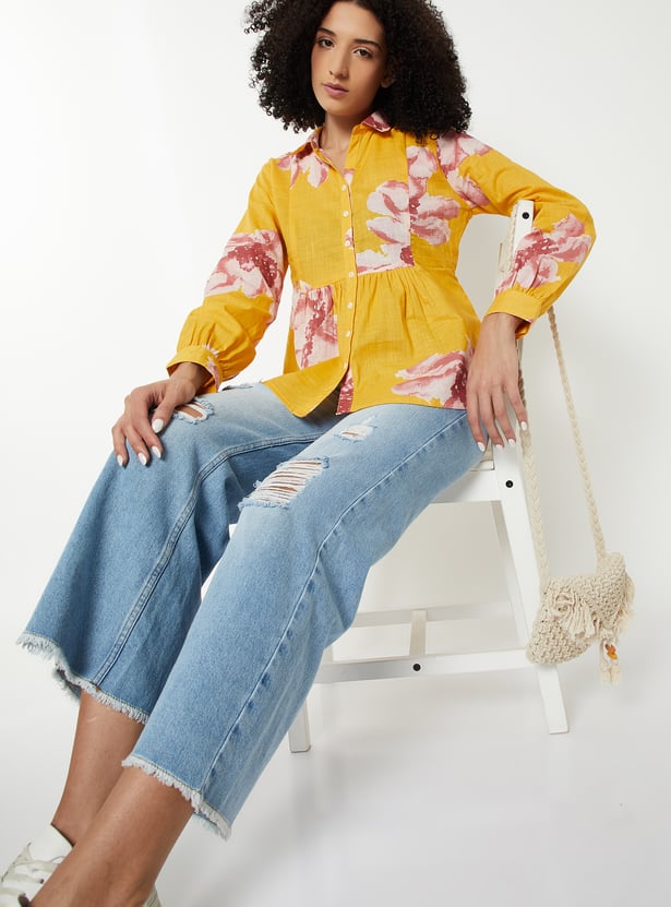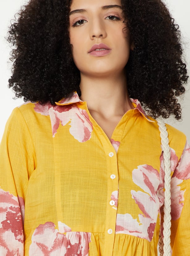 Refresh your everyday wardrobe with this all-over printed tunic. Designed with a spread collar, full sleeves, and a button placket, it offers effortless elegance with comfortable wear.
