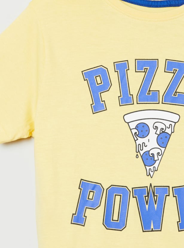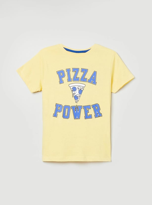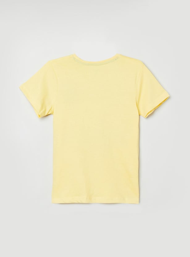 This T-shirt features a graphic print with a round neck and short sleeves for a complete look.