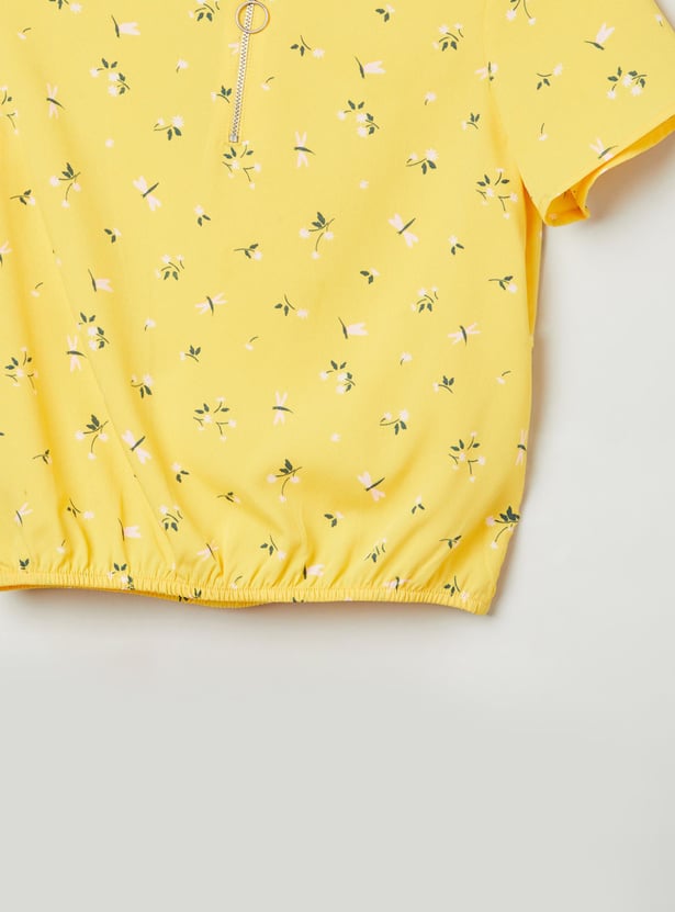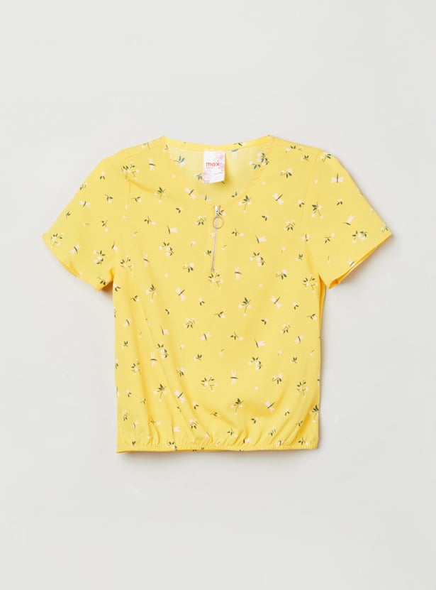Elevate you little one's look and style with this top featuring a printed surface, zip closure and a ribbed hem.