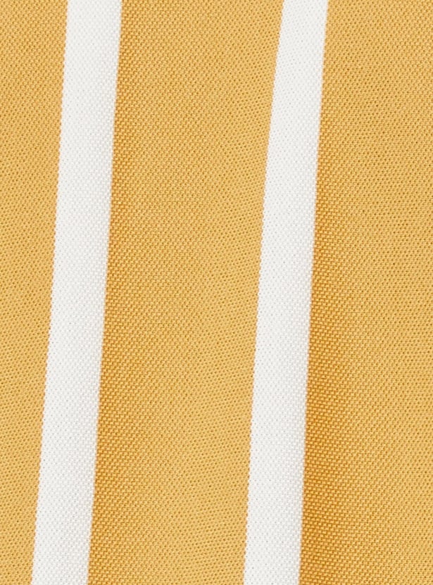 Get your casual collection to the next level with this polo t-shirt. It features a striped surface, polo collar, half sleeves, and a button placket. Make a difference by teaming it up with a pair of jeans and lace-up shoes.