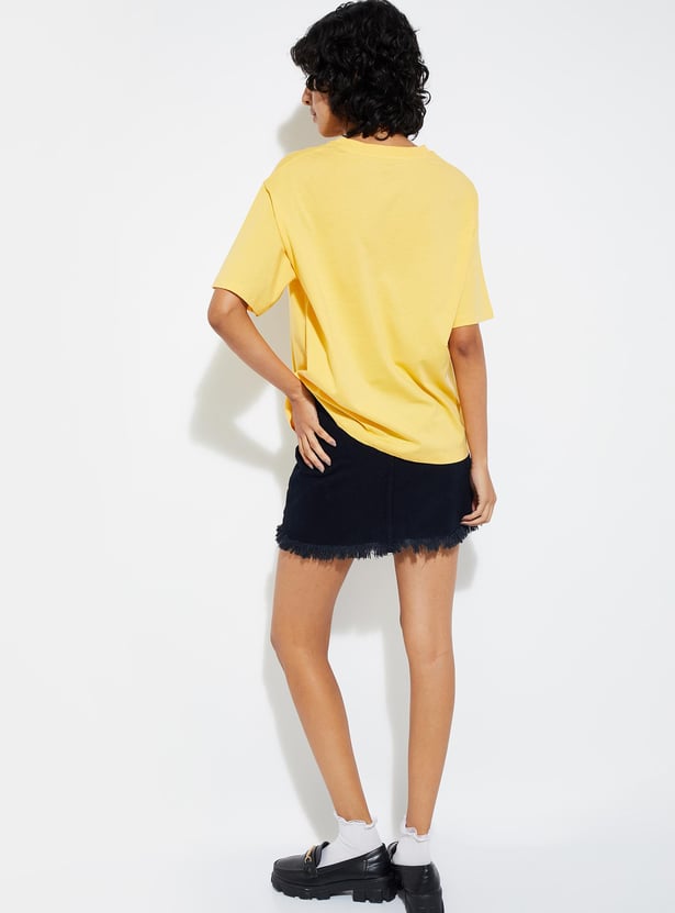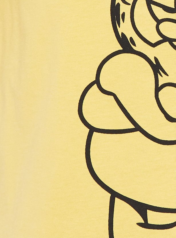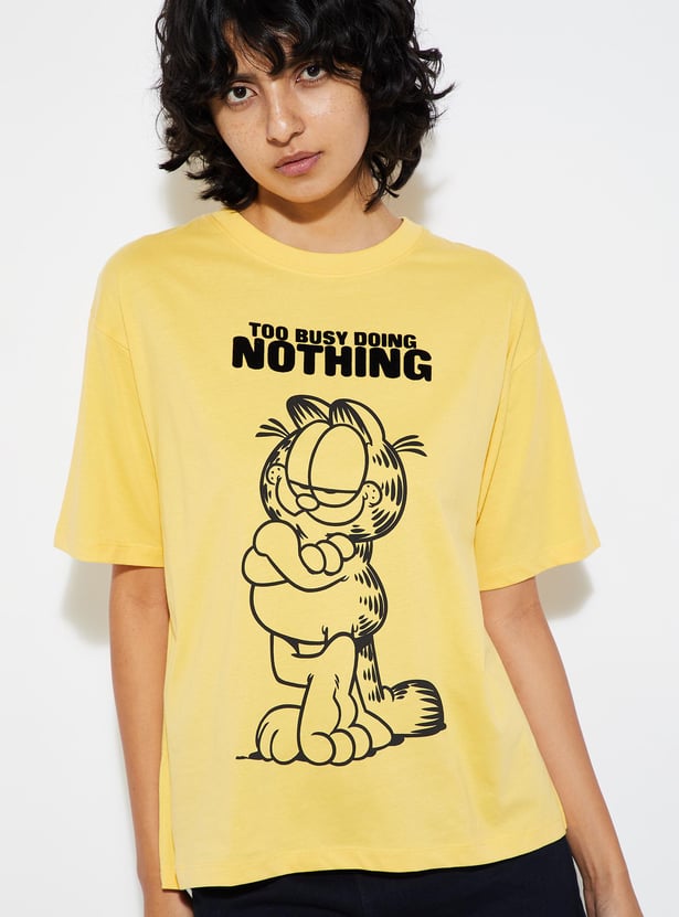 Elevate your street-style game with this Garfield-printed T-shirt. Featuring a stylish print, round neckline, and half sleeves, it effortlessly injects flair into your wardrobe.