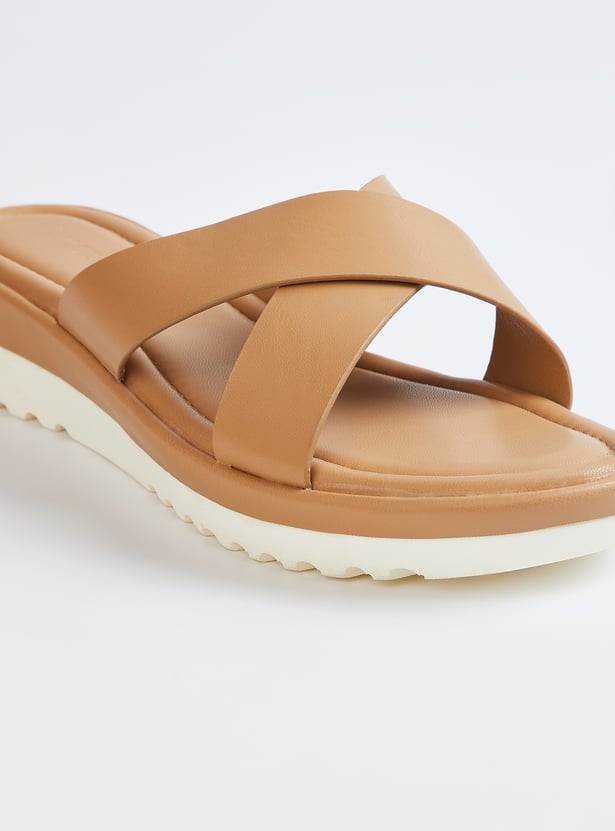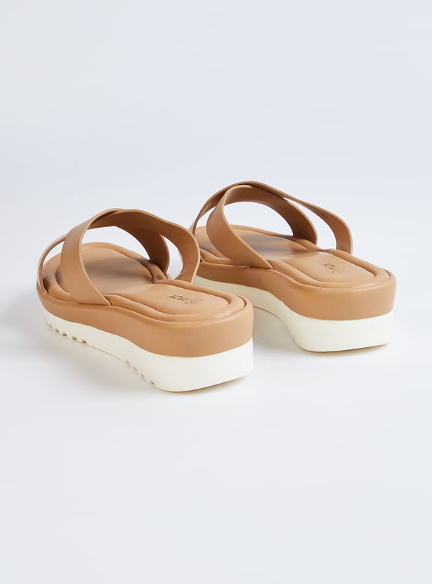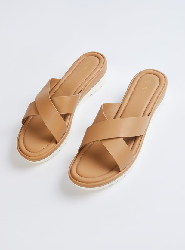 Step up your style with these colourblock platform sandals. Featuring cross straps and an easy slip-on design, they bring height, comfort, and a playful pop of contrast to your look.
