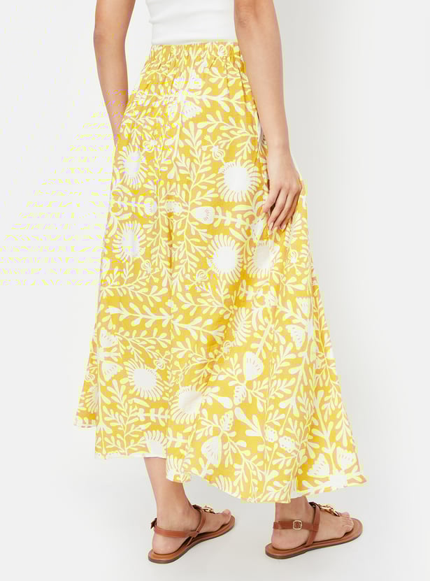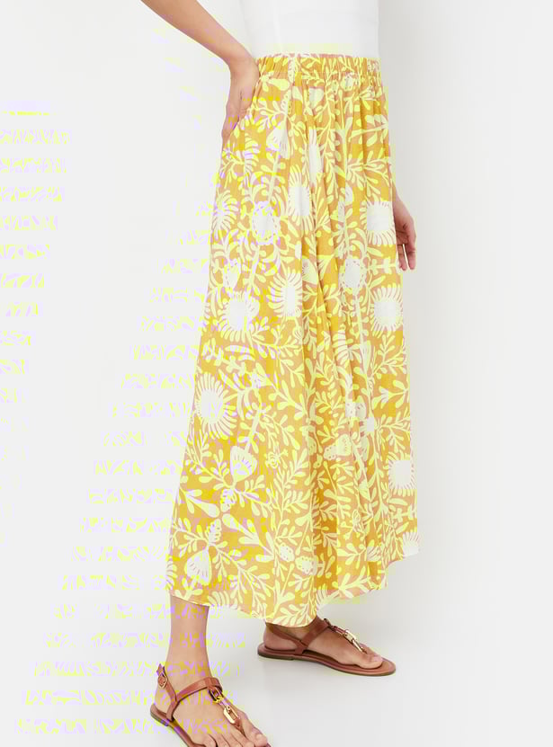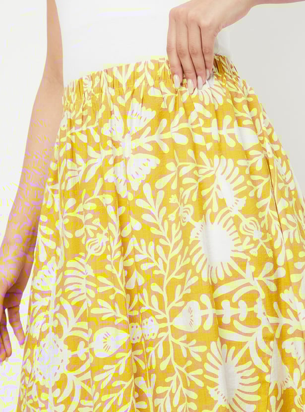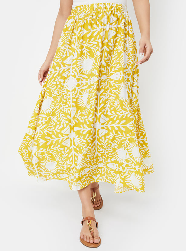 Add a feminine touch to your wardrobe with this printed flared skirt, designed in an ankle-length style for a flowy, elegant look. The elasticated waist ensures a comfortable, adjustable fit. Model Size :