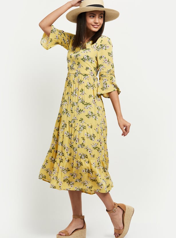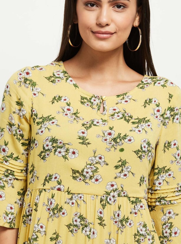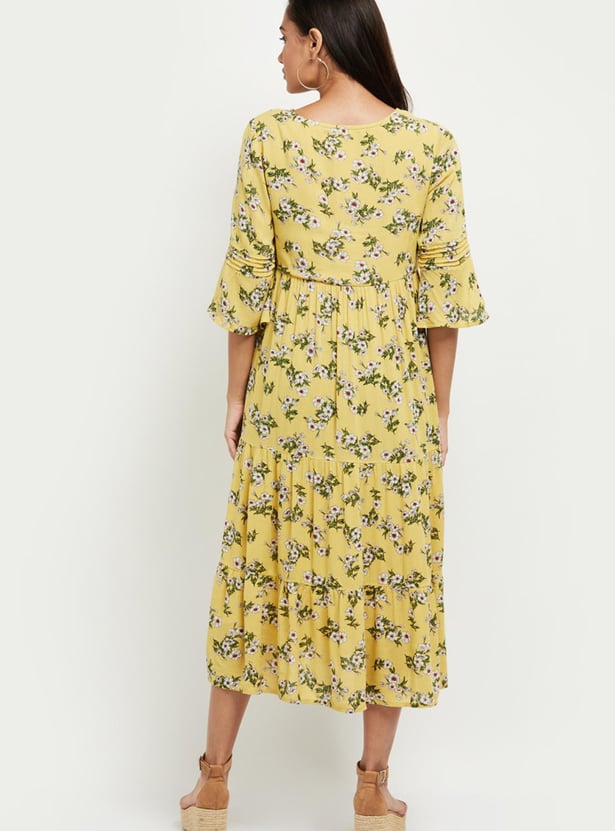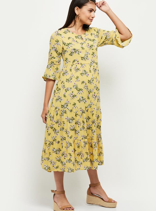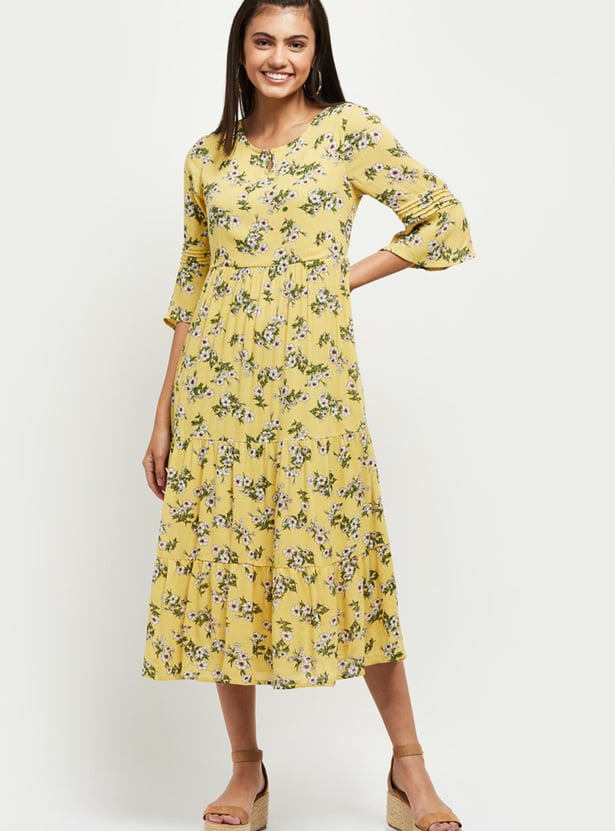 Elegant and comfortable, this printed A-line dress which has a keyhole neck, three-quarter sleeves, and a midi silhouette is all you need to ensure your wardrobe is up to date.