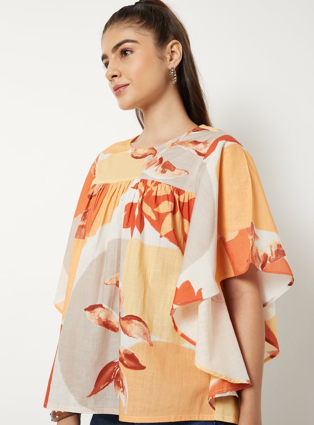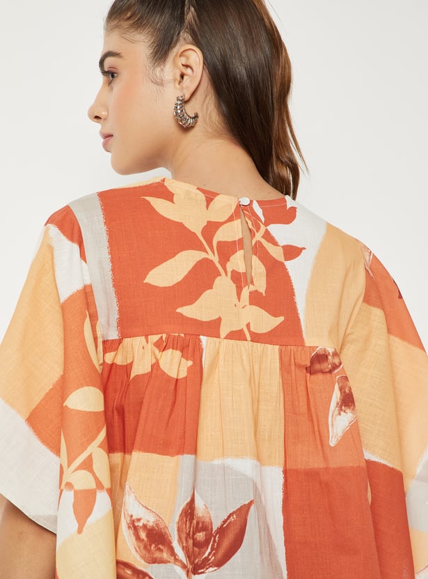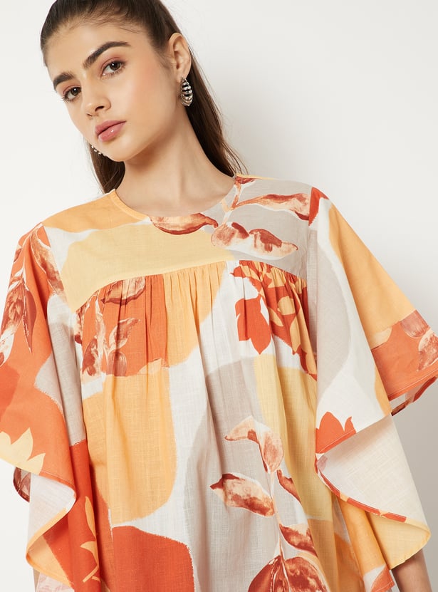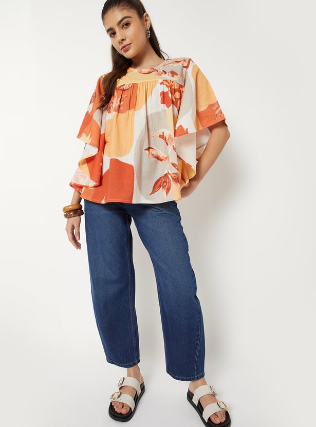 Add a graceful update to your wardrobe with this embroidered tunic, designed with a classic round neck and a neat button closure. The flared sleeves enhance its flowy silhouette, while the delicate embroidery adds a touch of elegance.