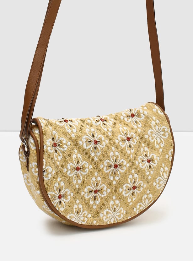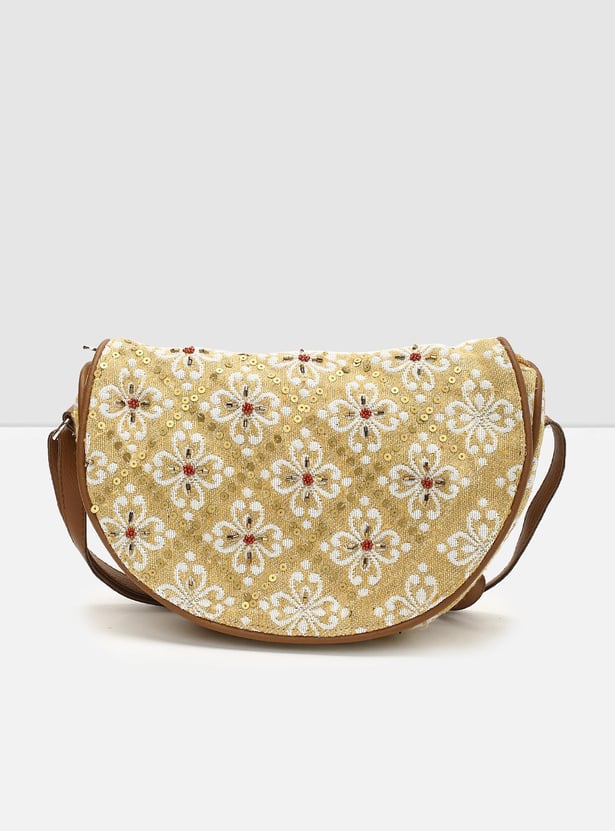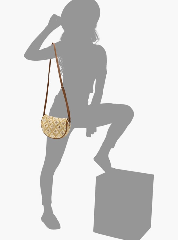 This sling bag is designed with embroidery all over featuring zip closure and adjustable strap detail is an ideal pick to amp up any of your everyday ensembles.