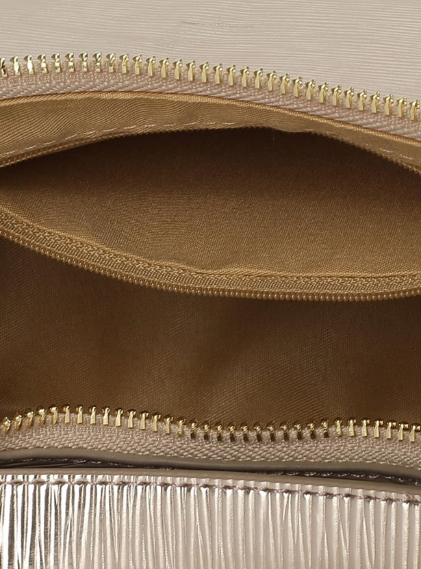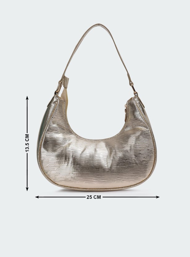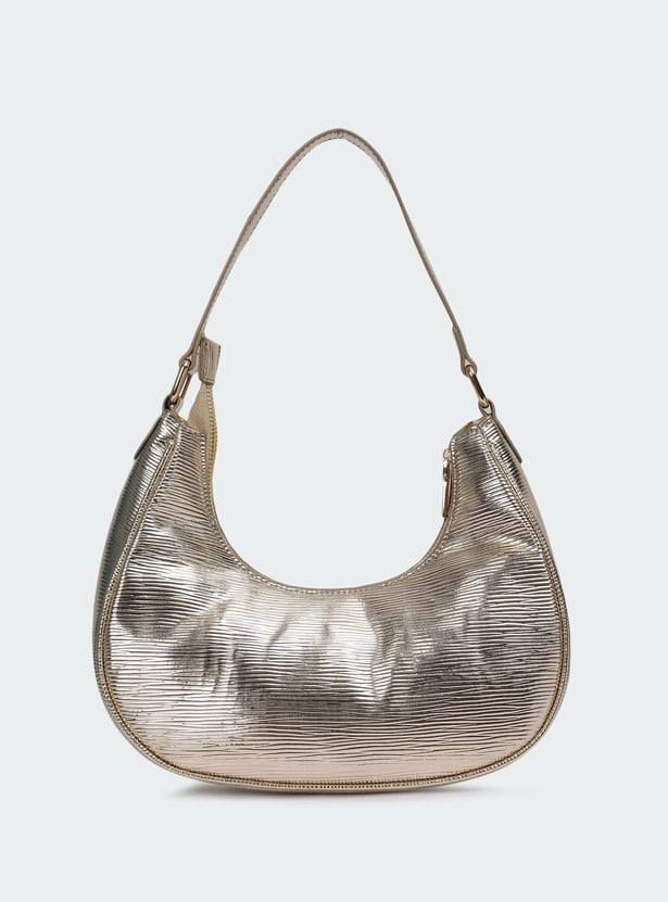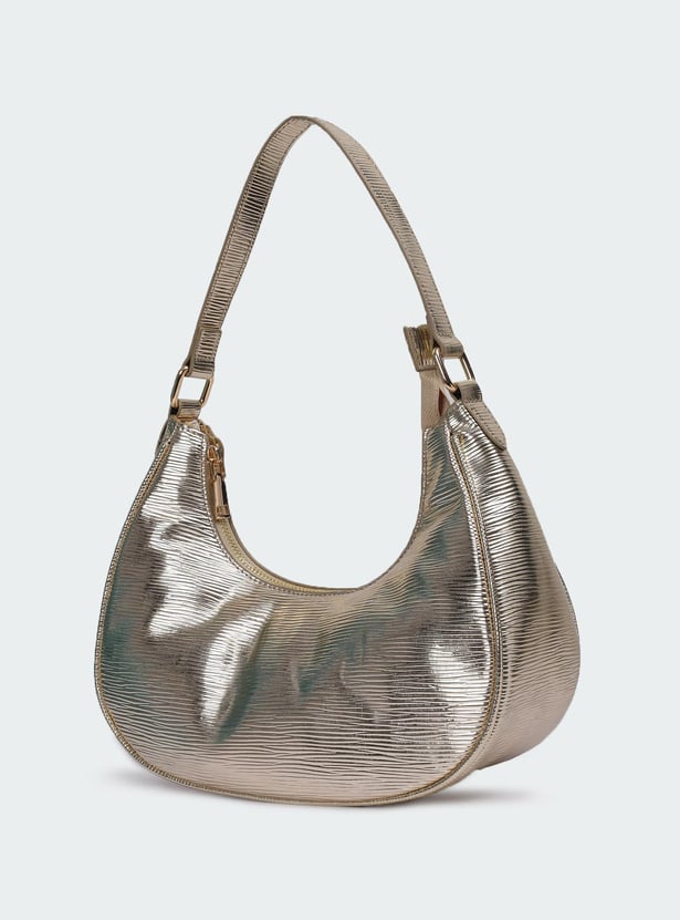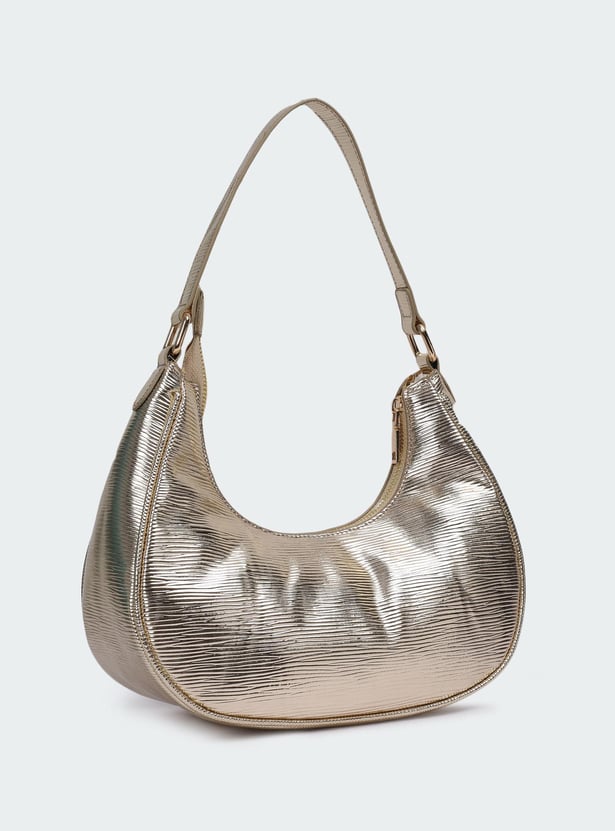 Instantly elevate your outfit with this shoulder bag. It is designed with a textured surface, flat strap, internal pockets, and a spacious compartment to store your essentials with ease.