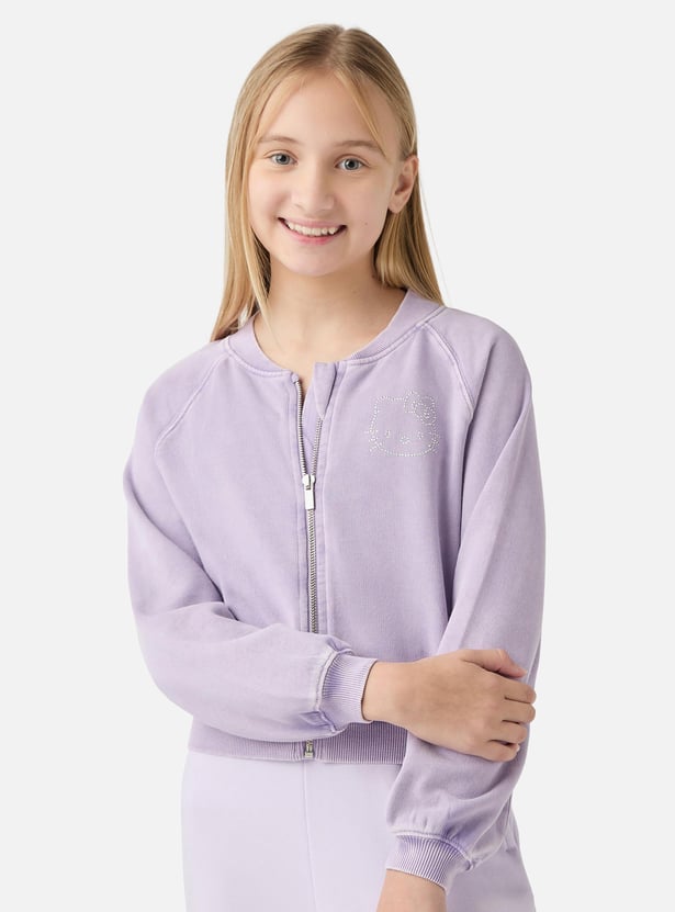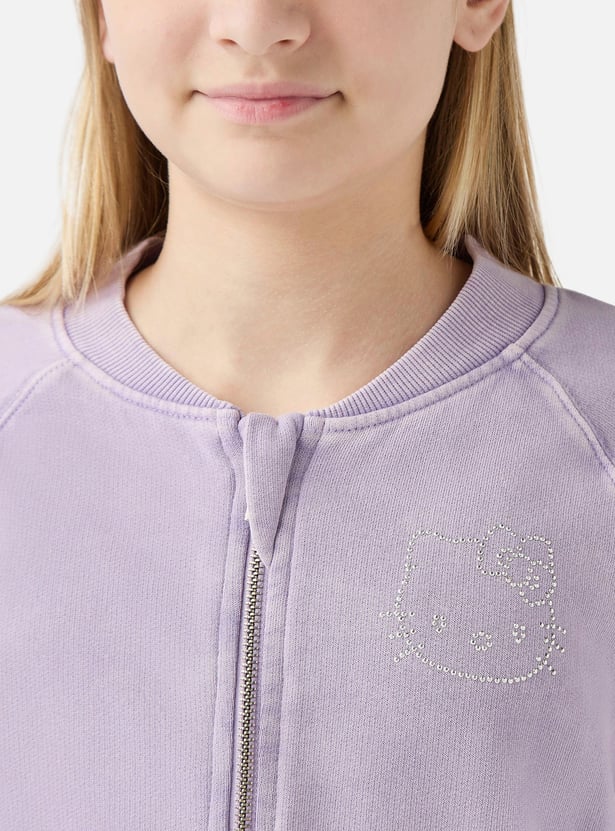 Hello Kitty Embellished Sweatshirt with Long Sleeves and Zip Closure