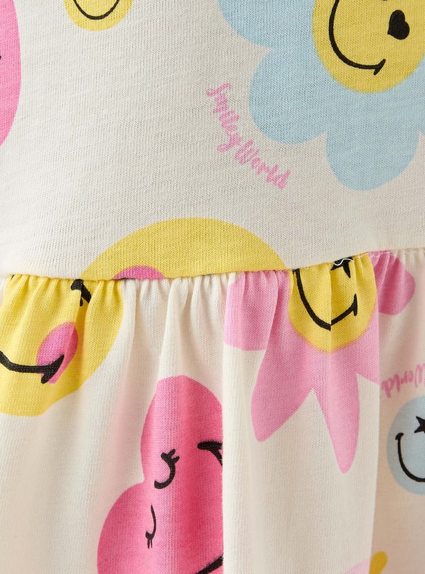 SmileyWorld All-Over Print Sleeveless Drop Waist Dress