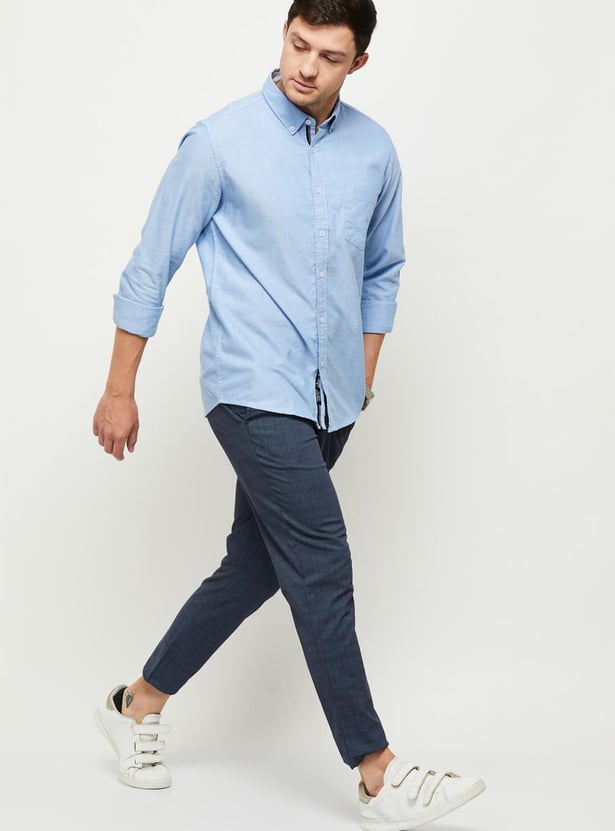 Amp up your perfect fit with this pair of chinos designed with a checked surface, 4 pockets, waist loops, and button closure.